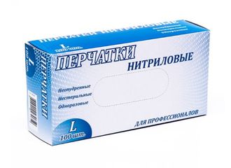 Перчатки нитриловые, размер L, 100шт, неопудренные, нестерильные, голубые